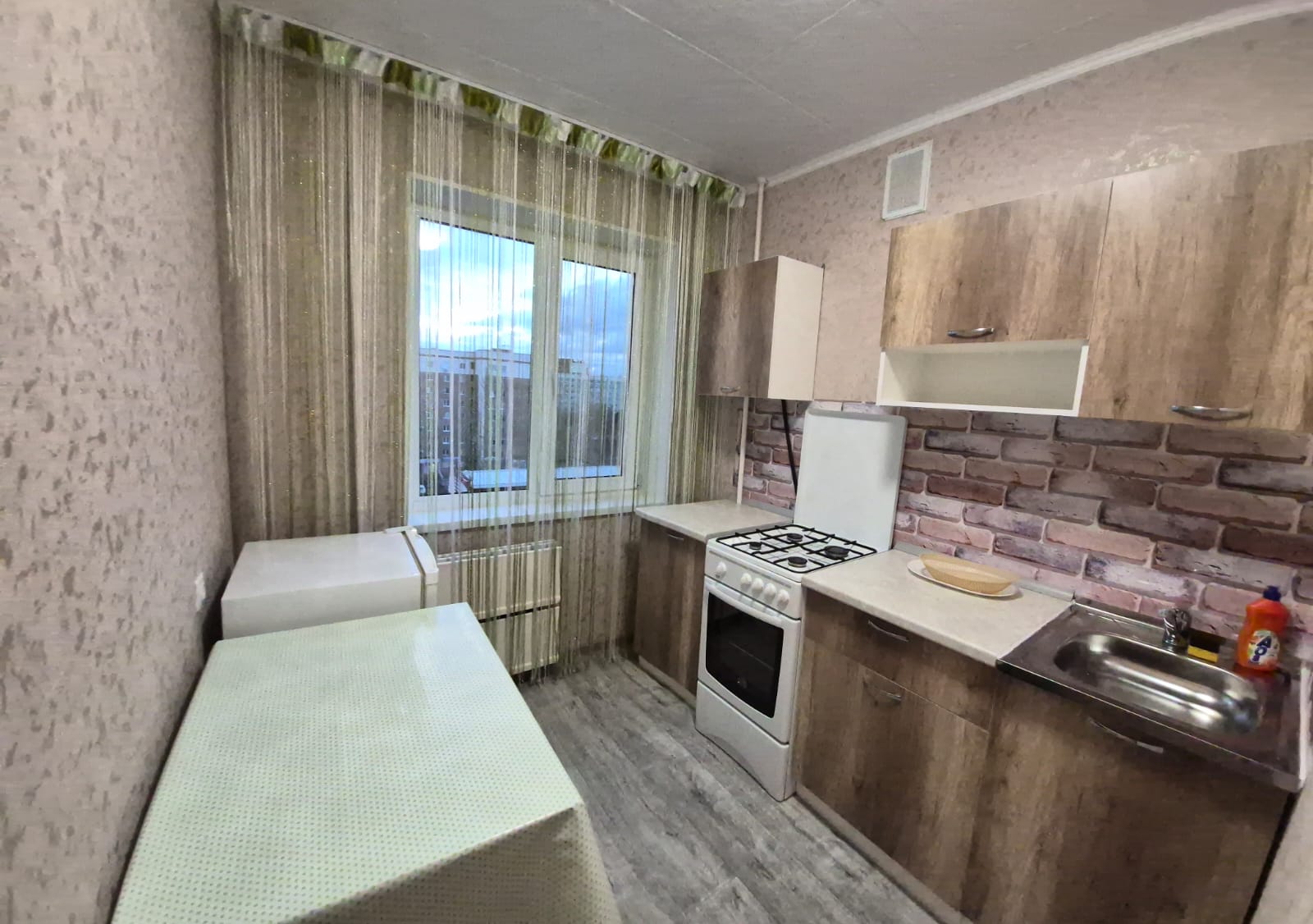 Имеется все необходимое: мебель и техника: холодильник, плита, стиральная