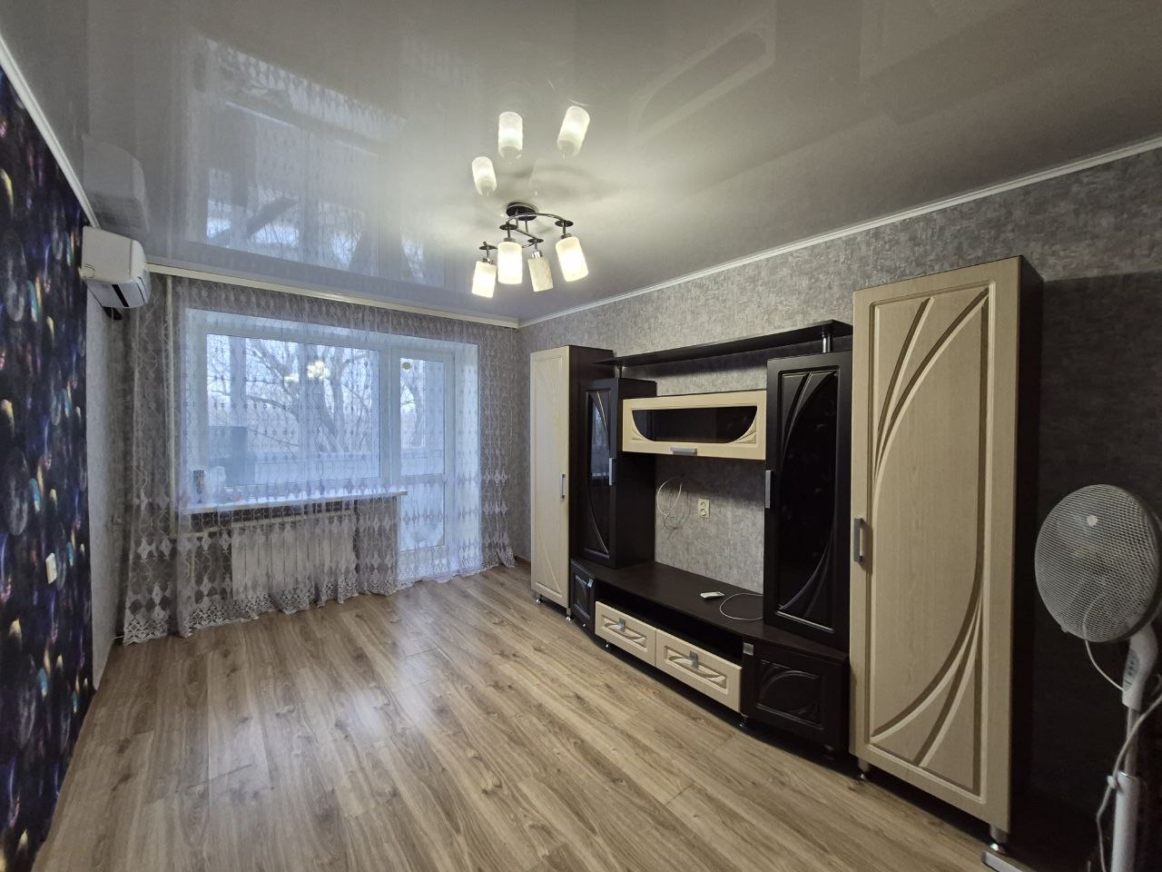 Остается встроенный ,новый кухонный гарнитур, встроенный шкаф купе ,бойлер,кондиционер,вытяжка.